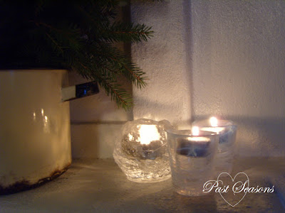 Mitt pynt för dagen blev; En kopparkastrull med ett lindat rött band med rosett runt handtaget. Fylld med mossa, krukväxter och ett singelljus med datumsträck på, perfekt när man har det lite taight om utrymme. Lite kottar och ett fat med röda älpplen gjorde att bordet vi äter vid blev riktigt mysigt : ) Och ett hjärta i ståltråd och spets som jag gjort själv. Ha en fortsatt trevlig vecka : )